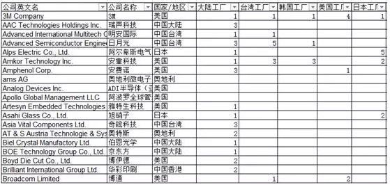 宝威触摸屏网讯,从苹果供应商看2018年全球电子产业链的中国势力变化。2018年上半年,全球最强大的电子科技公司苹果公司公布了200大供应商的2018版本,用苹果自己的话来说,这200家供应商代表了苹果2017年全球原材料,制造和组装支出金额的98%。This list is our top 200 suppliers, includingcomponent providers and others representing at least 98% of procurementexpenditures for materials, manufacturing, and assembly of our productsworldwide in 2017.